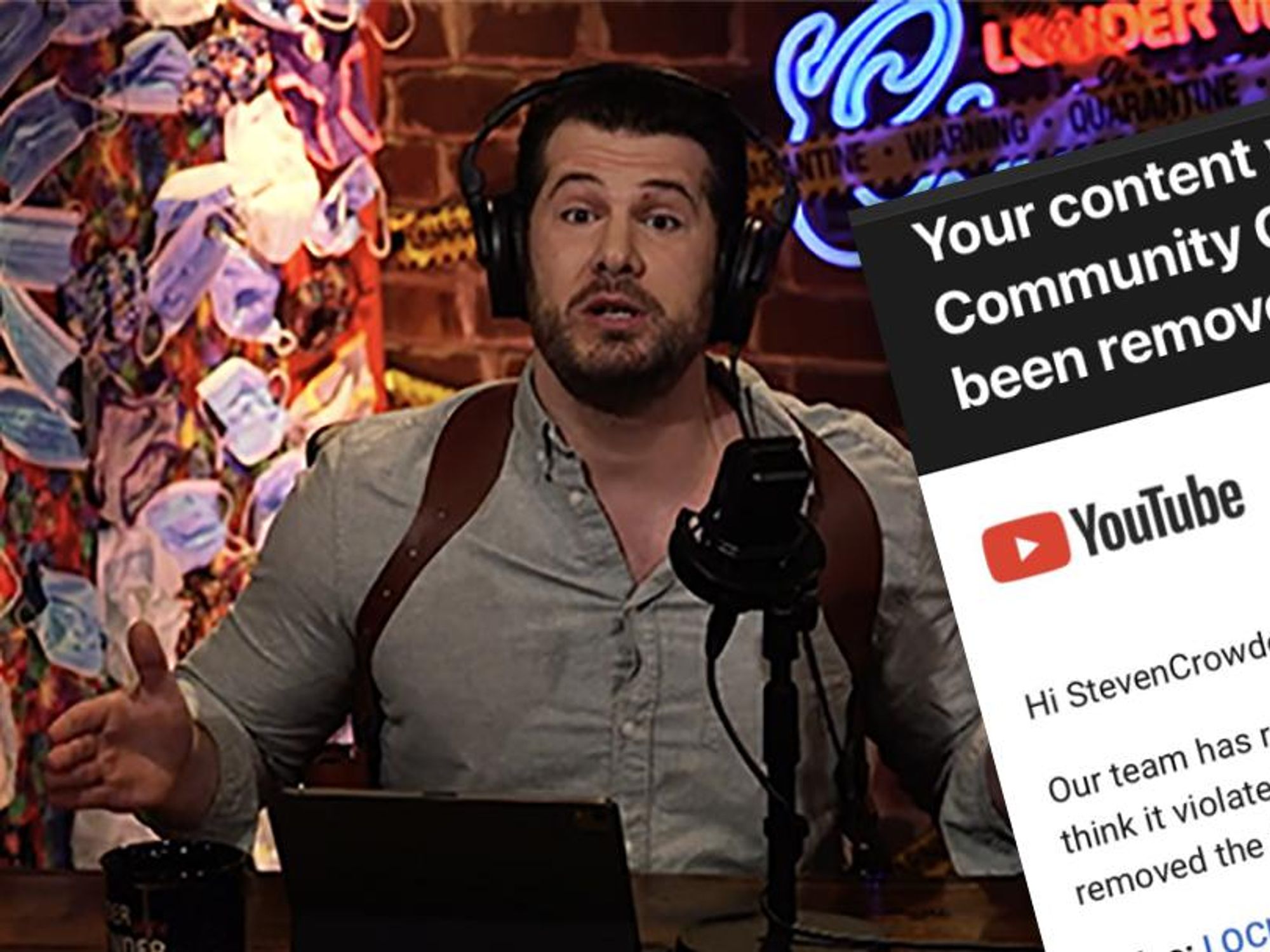 On March 16, Louder with Crowder celebrated the one-year anniversary of “15 Days to Flatten the Curve.” It was a year since “experts” told us we needed to shut down for fifteen days. Steven and the gang felt the anniversary called for a party. Sadly, the entire episode has been removed from YouTube. “But why” you ask. Let’s skip down memory lane for that. Remember Dr. Erickson and Dr. Massihi? It’s okay, they’ve also been removed from YouTube. They were the two California doctors who spoke out against COVID restrictions all the way back in April of 2020. Since they also questioned the tactics surrounding COVID, while actually speaking about their actual experiences in the medical field, their video was labeled misinformation and YouTube removed any uploads of it. That now includes OUR show for showing a clip of the forbidden video. The Big Tech company claimed the Louder with Crowder episode “LOCKDOWN ANNIVERSARY! Reviewing ALL the Lies and the Liars Who Told Them!” violated its guidelines and was removed from the platform. Though the episode can be seen in its entirety if you’re a Mug Club subscriber.